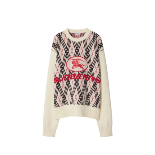 A sweater made in Italy from a lightweight wool blend, jacquard-knitted with the Burberry Check in an argyle pattern. Cut to a relaxed fit, the crew-neck style is finished with our logo and an embroidered Knight stamp – an archival motif from the 1980s.