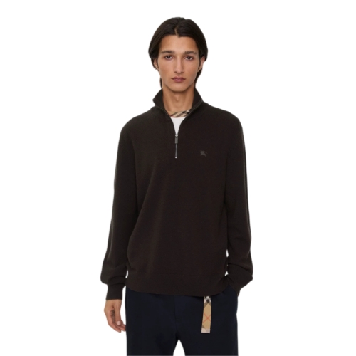 A funnel-neck sweater in a lightweight cashmere blend jersey. The style is knitted to a slim fit and embroidered with a tonal Equestrian Knight Design.