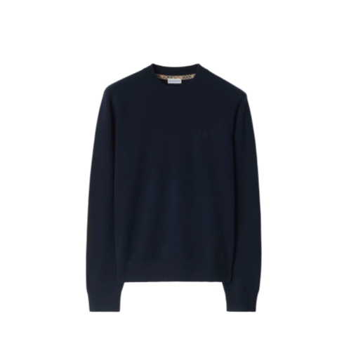 A sweater in a lightweight cashmere blend jersey, embroidered with a tonal Equestrian Knight Design. The crew-neck style is cut to a slim fit and subtly detailed with a Burberry Check trim inside the neckline.