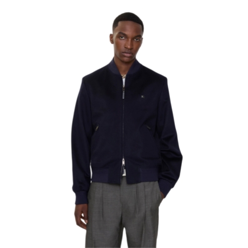 A bomber jacket in technical cashmere – designed to help you stay comfortable in the elements. The fabric is brushed for a soft finish and bonded to a thin membrane with a tonal chevron lining. The style is cut to a regular fit with leather-trimmed zip pulls and our Equestrian Knight Design motif.