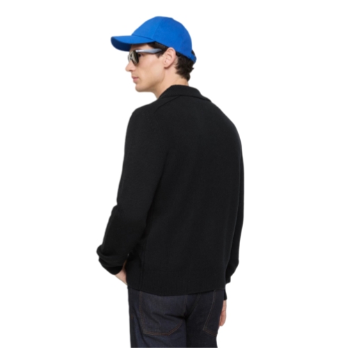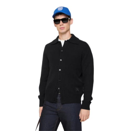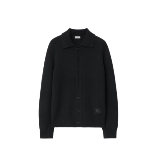 A collared cardigan made from ultra-soft cashmere with a hint of stretch, cut to a regular fit. The style is knitted with tonal elbow patches, chain-stitching at the shoulders and a contrasting Equestrian Knight Design.