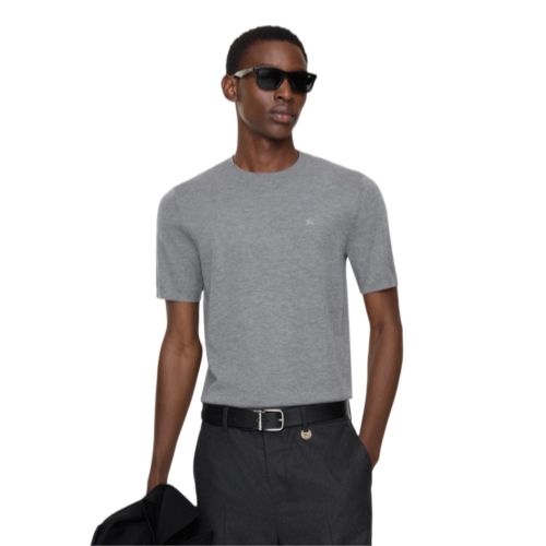 A short-sleeved top in a lightweight fine-knit cashmere, cut to a slim fit. The style is subtly embroidered with our Equestrian Knight Design and lined at the neck with a tonal check trim.