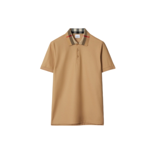 A polo shirt in cotton piqué with a knitted Burberry Check collar. The design is cut to a slim fit.