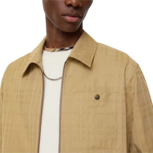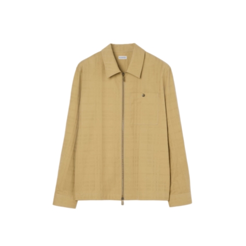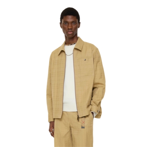 A zip-front overshirt made from cotton woven with a textured check. The design is cut to an oversized fit and features B-cut hardware with an antique finish.