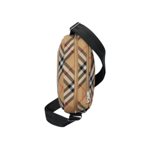 A crossbody bag woven in the Burberry Check with an appliquéd Equestrian Knight Design and lined in a solid colour. The design features B-cut zip pulls and an exterior pocket for small items. Part of Burberry Classics, wardrobe foundations with a unique Burberry slant.