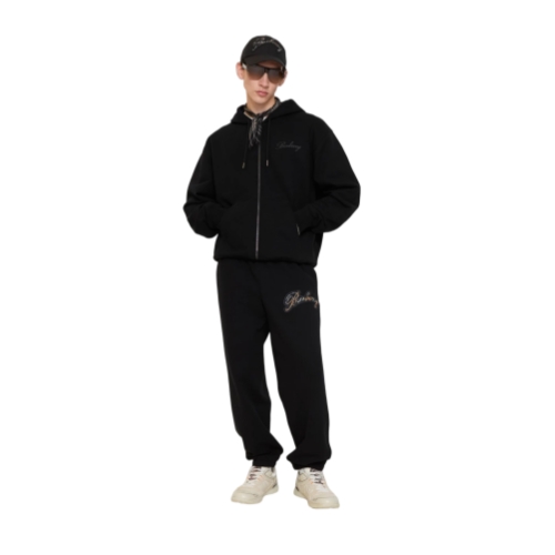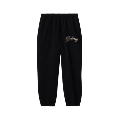 A pair of jogging pants in lightweight loop-back cotton, cut to a relaxed fit. The style is embroidered with with a cursive logo filled in Burberry Check.