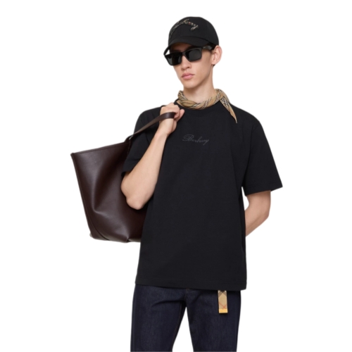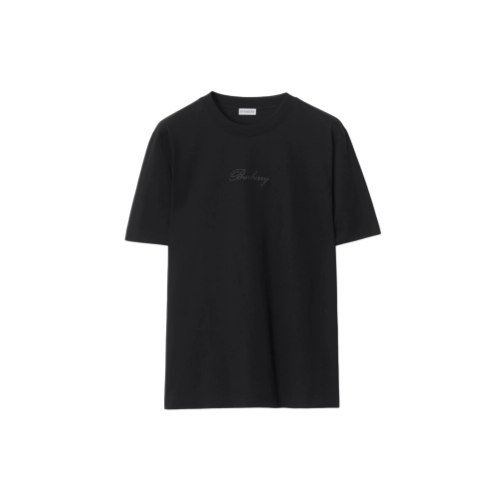 A crew-neck T-shirt cut to a relaxed fit in midweight cotton jersey. The design features a cursive logo in chain-stitch embroidery filled with the Burberry Check.