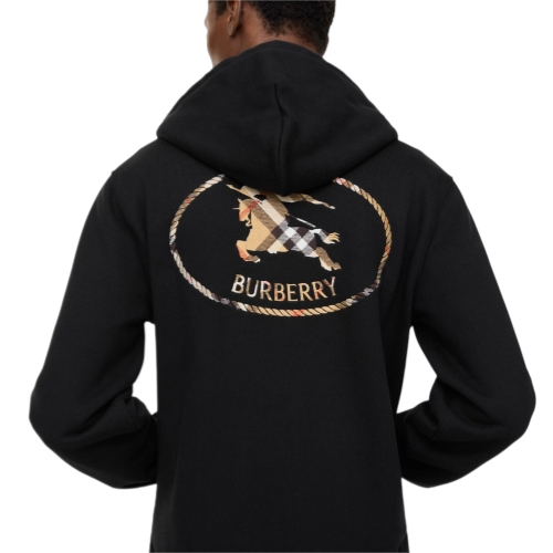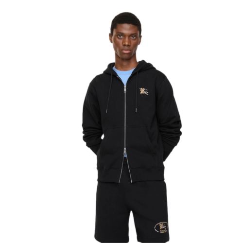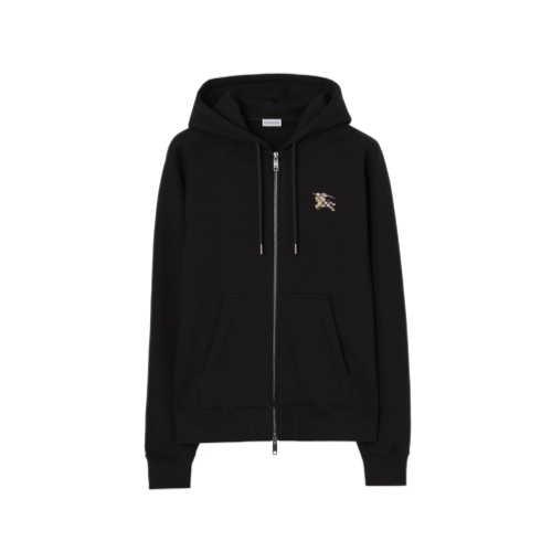 A zip hoodie in lightweight loop-back cotton, cut to a slim fit. The drawcord style is embroidered at the back with our Knight stamp in sand beige Burberry Check – the archival motif was first seen on Burberry bags in the 1980s.