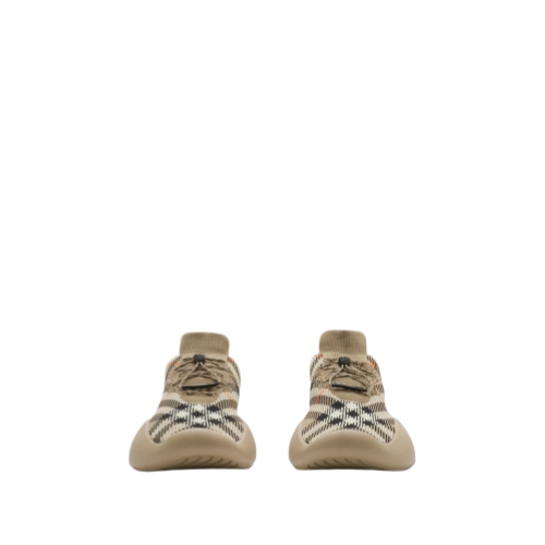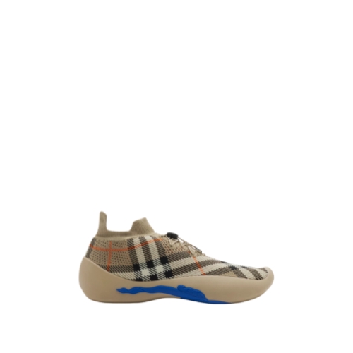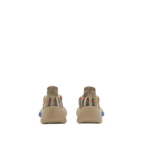 Italian-made sneakers with a breathable sock upper knitted with the Burberry Check. The leather-lined style features check laces with a B shield toggle and an oversized Equestrian Knight Design that wraps around the sole. Part of Burberry Classics, wardrobe foundations with a unique Burberry slant.