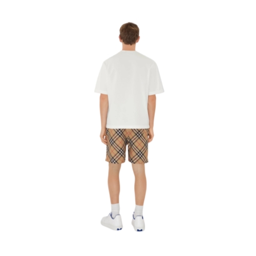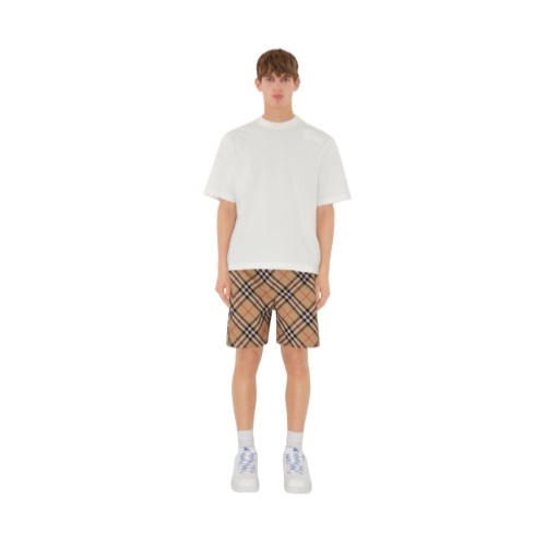 Drawcord shorts in Italian-woven twill patterned with the Burberry Check and appliquéd with our Equestrian Knight Design. Cut to a relaxed fit, the style features secure zip pockets.