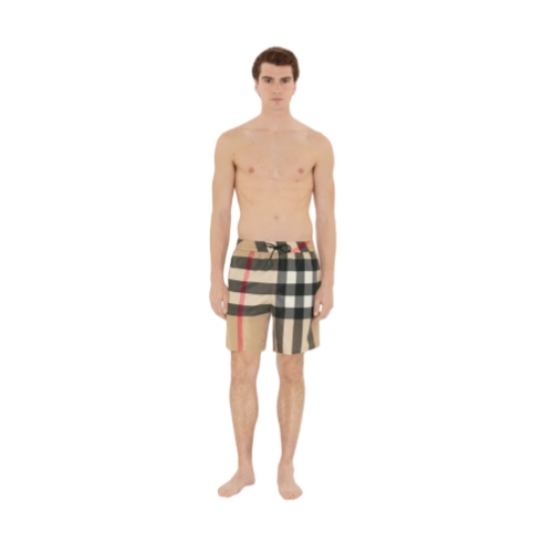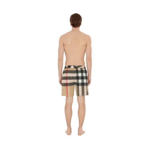 Drawcord swim shorts woven with the Burberry Check. The style is cut to a relaxed fit and lined in mesh.