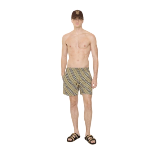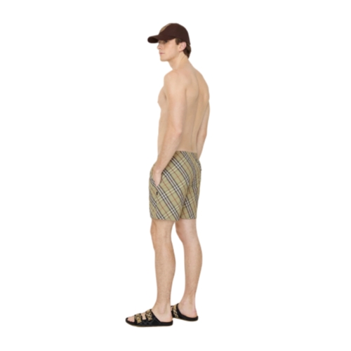 Drawcord swim shorts woven with the Burberry Check in a seasonal glade green. The style is cut to a regular fit and lined in mesh.