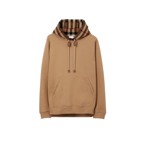 A hoodie in a brushed-back cotton blend, trimmed with a Burberry Check cotton flannel hood. The design is cut to a relaxed fit.