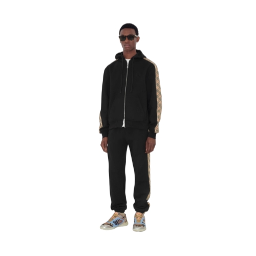 Jogging pants in lightweight loop-back cotton, framed with Burberry Check taping in our signature archive beige colourway. The style is cut to a slim fit and is embroidered with a tonal Equestrian Knight Design.