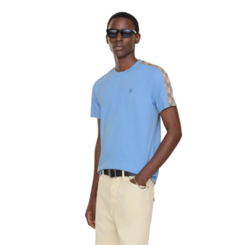 A T-shirt in lightweight cotton jersey, cut to a slim fit. The style is embroidered with the Equestrian Knight Design and framed with Burberry Check taping at the sleeves.