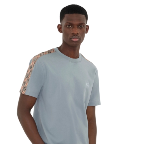 A T-shirt in lightweight cotton jersey, cut to a slim fit. The style is embroidered with the Equestrian Knight Design and framed with Burberry Check taping at the sleeves.