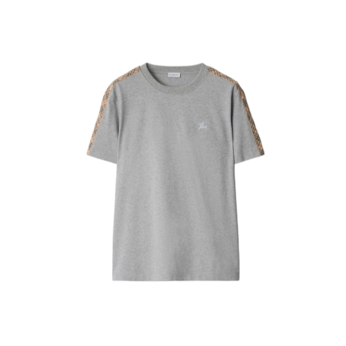 A T-shirt in lightweight cotton jersey, cut to a slim fit. The style is embroidered with the Equestrian Knight Design and framed with Burberry Check taping at the sleeves.