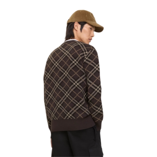 Burberry Men Check Cotton Wool Cardigan Sand beige 81225571