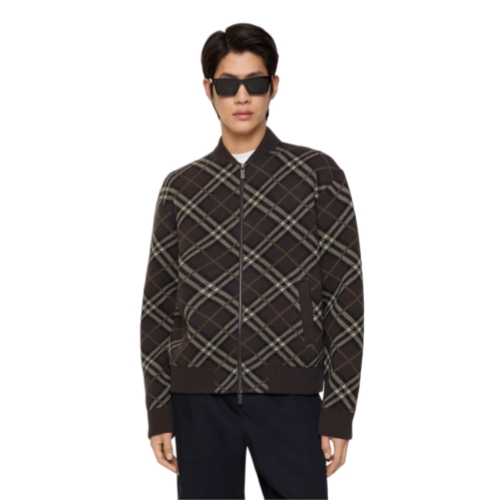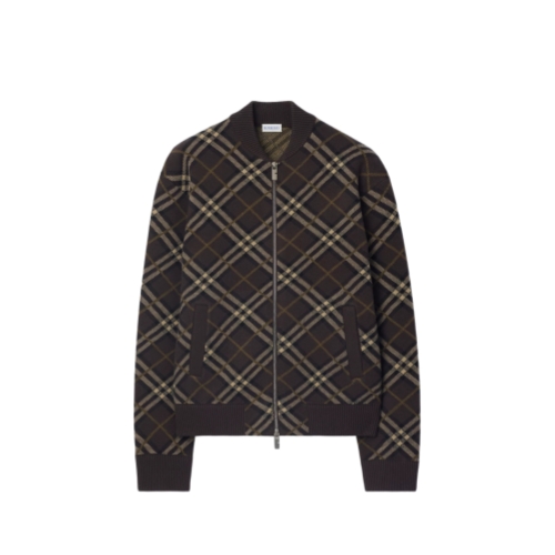 A bomber jacket in a lightweight wool cashmere blend, jacquard-knitted with the Burberry Check. The style is cut to a relaxed fit and finished with B-cut zip pulls.