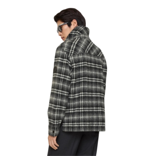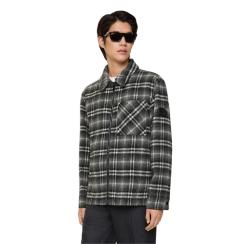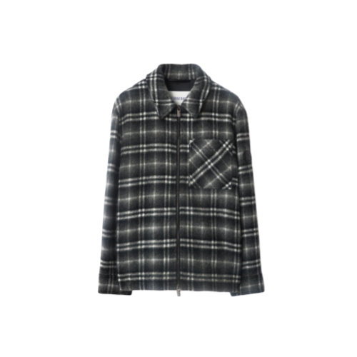 A zip-front overshirt made from brushed wool twill, woven with the Burberry Check in a monochrome palette. Cut to a regular fit, the design is appliquéd with a leather Knight stamp – an archival motif first seen on Burberry bags in the 1980s.