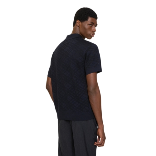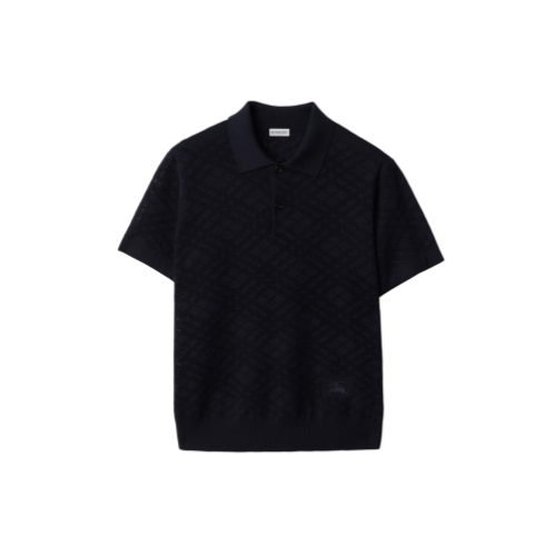 A polo shirt made in Italy from lightweight wool, cut to a regular fit. The style is subtly knitted with a check pointelle and embroidered with a tonal Equestrian Knight Design.