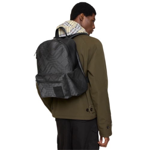 The Chester backpack is crafted from a check nylon blend with a tightly woven texture for a technical, sporty feel. The compact style is finished with graphite grey hardware and an appliqué that reworks our Equestrian Knight Design label as an embossed leather patch.
