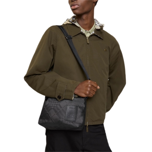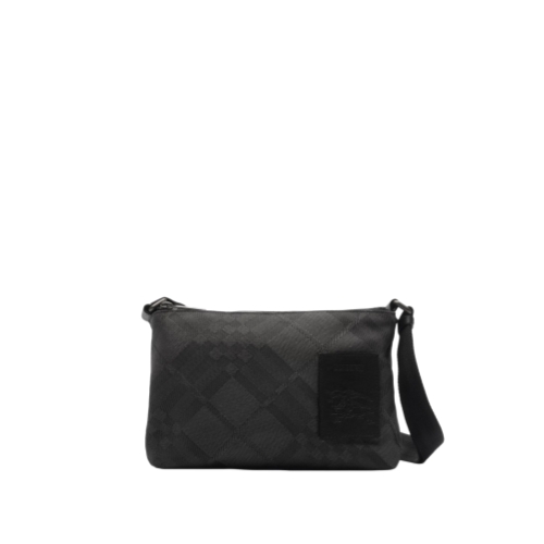 The Chester crossbody bag is crafted from a check nylon blend with a tightly woven texture for a technical, sporty feel. The compact style is finished with graphite grey hardware and an appliqué that reworks our Equestrian Knight Design label as an embossed leather patch. Adjust the fit using the lightweight webbing strap.