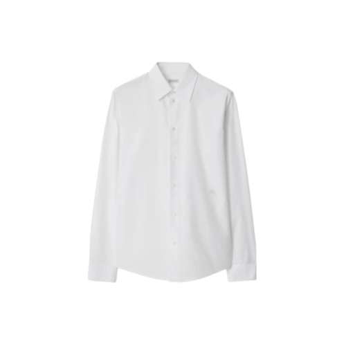 A long-sleeved shirt in Italian-woven cotton poplin, embroidered with the Equestrian Knight Design. The formal style is tailored to a slim fit.
