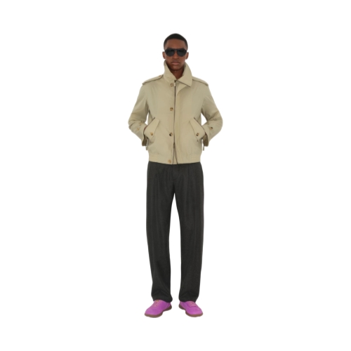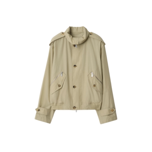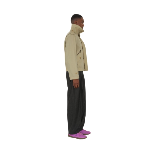 A jacket made in Italy from lightweight cotton nylon, tailored to a relaxed fit and partially lined in matching fabric. The funnel-neck style reworks elements from our heritage rainwear, mixing signature epaulettes and button-tab cuffs with B-cut zips.