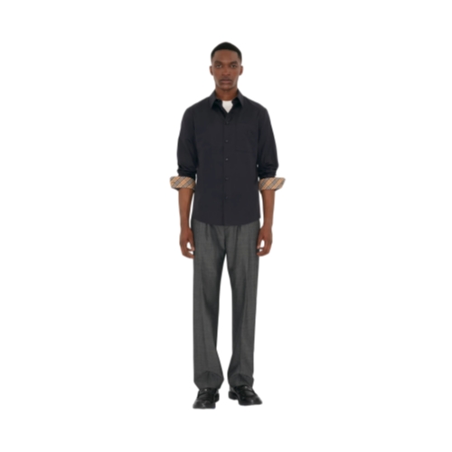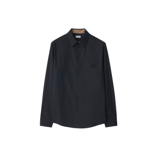 A shirt in Italian-woven cotton poplin, cut to a regular fit. The style is embroidered with a tonal Knight stamp, an archival motif first seen on Burberry bags in the 1980s. Roll back the cuffs to reveal the Burberry Check lining.