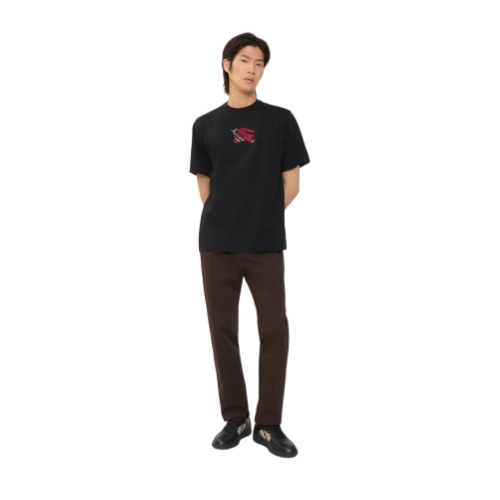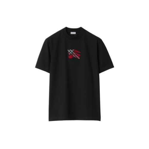 A T-shirt in lightweight cotton jersey, cut to a slim fit. The style is embroidered with our logo and Equestrian Knight Design on a Burberry Check backdrop in a seasonal post red colourway.