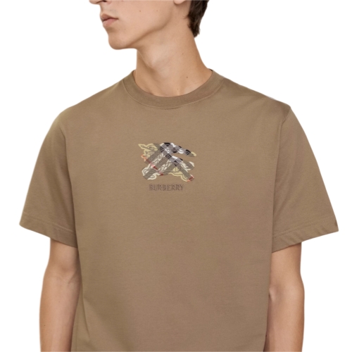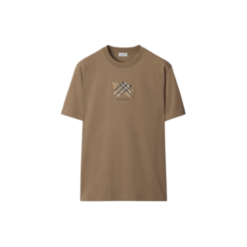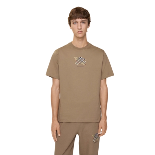 A T-shirt in lightweight cotton jersey, cut to a slim fit. The style is embroidered with our logo and Equestrian Knight Design on a Burberry Check backdrop in signature sand beige.