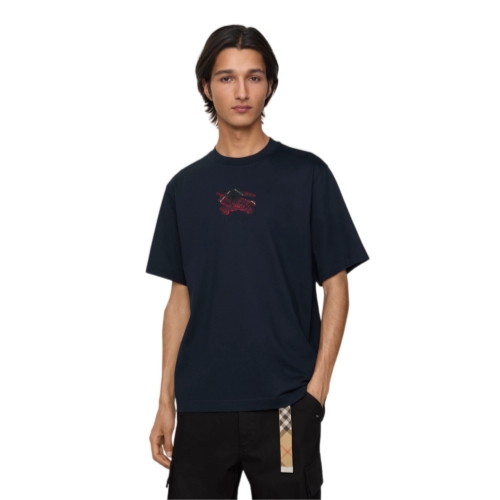 A T-shirt in lightweight cotton jersey, cut to a slim fit. The style is embroidered with our logo and Equestrian Knight Design on a Burberry Check backdrop in seasonal poppy red.