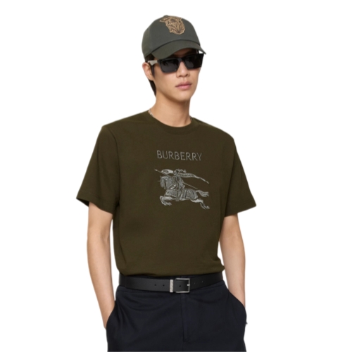 A crew-neck T-shirt in midweight cotton jersey, cut for a slim fit. The style is embroidered with our logo and the Equestrian Knight Design in lustrous thread.