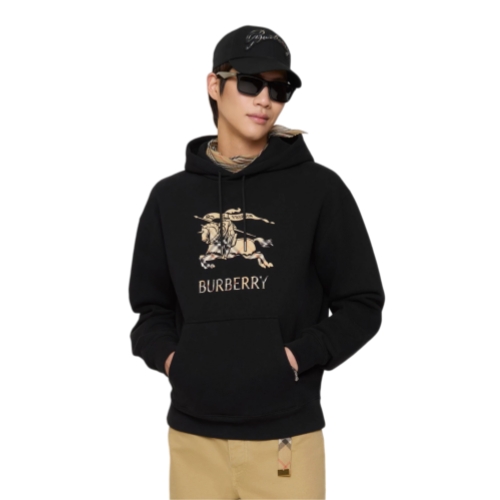 A hoodie made from lightweight loop-back cotton, cut to a slim fit. The style is screen-printed with our logo and Equestrian Knight Design filled with an ombré Burberry Check.