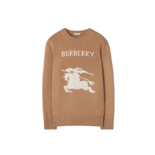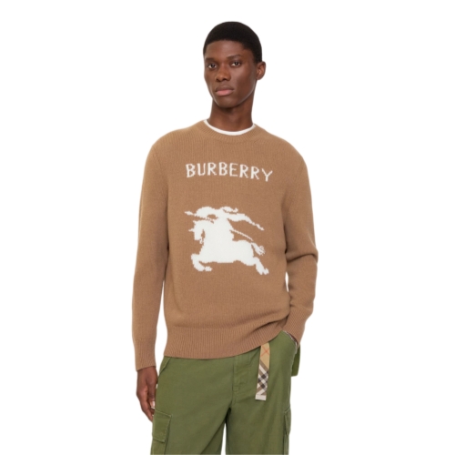 An Italian-made sweater in heavyweight wool cashmere, knitted with a contrasting Equestrian Knight Design and logo. The crew-neck style is cut to a regular fit.