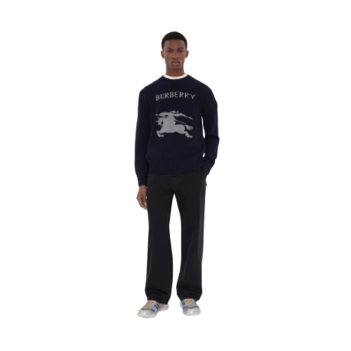 An Italian-made sweater in soft wool cashmere, knitted with a contrasting Equestrian Knight Design and logo. The crew-neck style is cut to a regular fit.