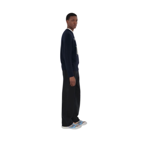 – Knitted Burberry lettering at front