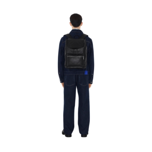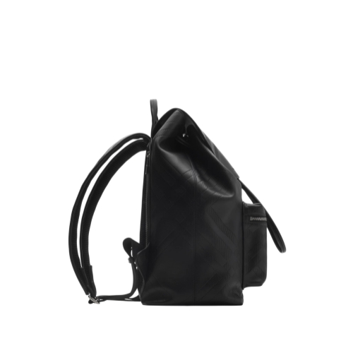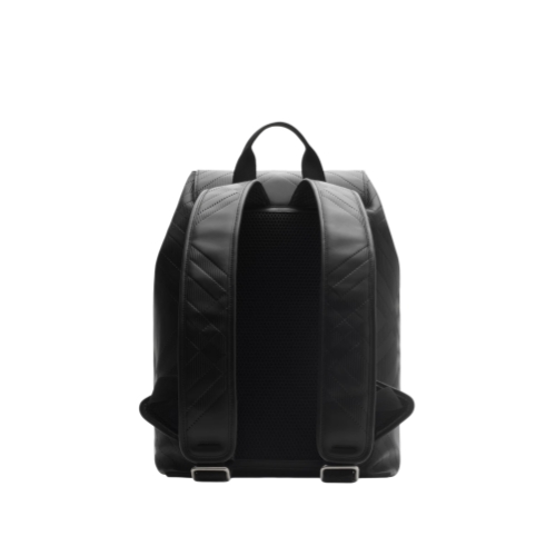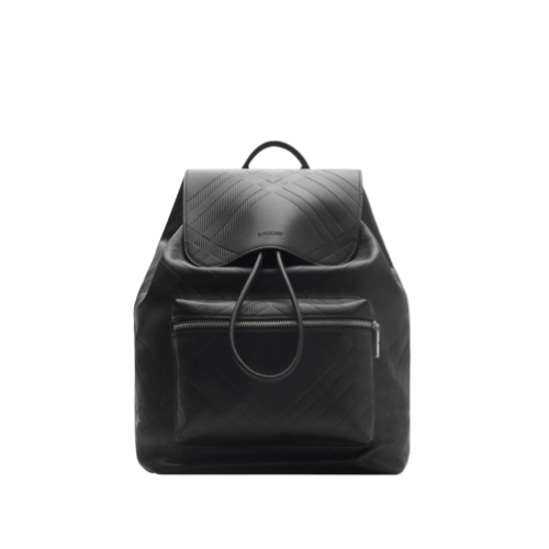 A spacious backpack made in Italy from smooth calf leather, embossed with a check pattern and lined in check canvas. The structured style is sized to fit a 15-inch laptop and features a breathable mesh back panel.