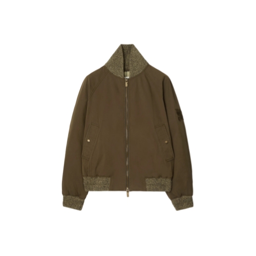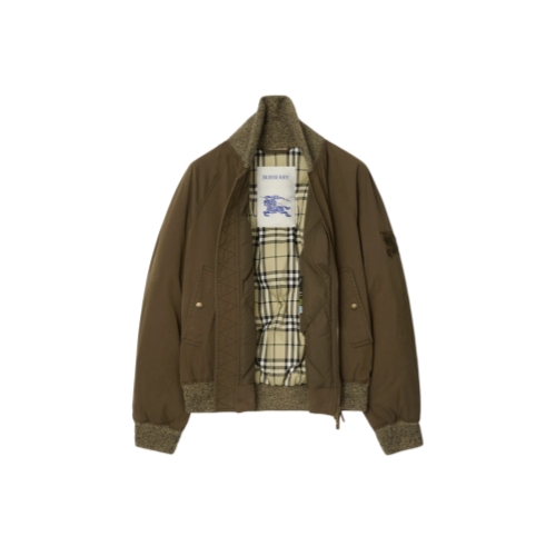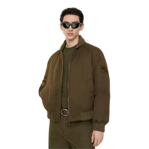 A bomber jacket in cotton nylon gabardine, washed for a soft finish and padded with goose down and feathers. Part of our Gabardine Capsule, the design pays homage to the house’s iconic signature – a revolutionary fabric invented by Thomas Burberry, worn by explorers and everyday adventurers alike. Inside the jacket is lined with the Burberry Check and features a specially designed label inspired by an archival campaign. Cut to a relaxed fit, the style is finished with an embroidered Equestrian Knight Design and rib-knit trims in a wool-cashmere blend.