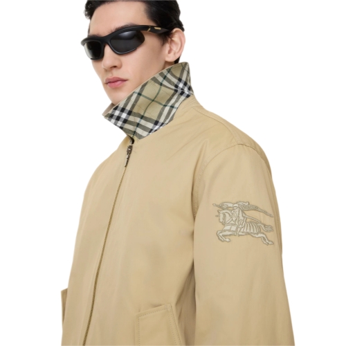 A jacket in cotton nylon gabardine, washed for a soft finish. Part of our Gabardine Capsule, the design pays homage to the house’s iconic signature – a revolutionary fabric invented by Thomas Burberry, worn by explorers and everyday adventurers alike. Inside the jacket is lined with the Burberry Check and features a specially designed label inspired by an archival campaign. Cut to a regular fit, the zip-up style is finished with our Equestrian Knight Design embroidered in metallic threads.