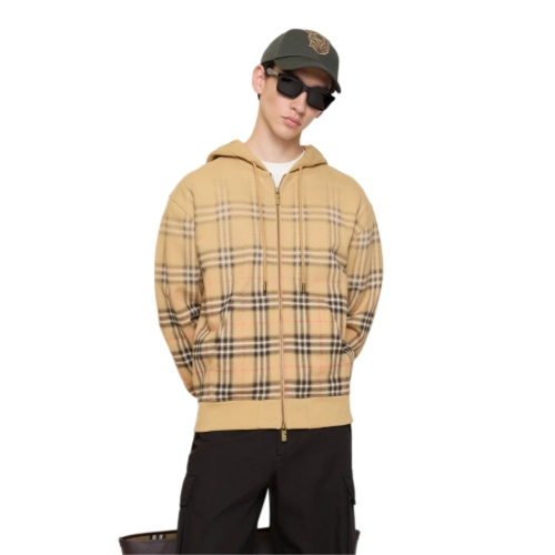 A zip hoodie in lightweight loop-back cotton, printed with a subtle gradient that blends the Burberry Check into a solid colour. The design is cut to a relaxed fit and finished with metal hardware in an antique finish.