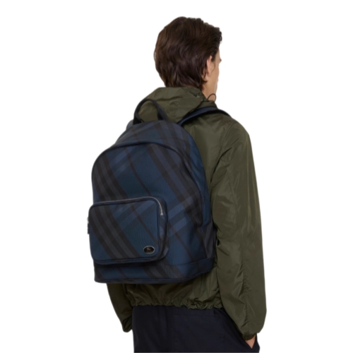 The spacious Grid backpack is woven in our Burberry Check with a durable, ribbed texture. The style is lined in nylon and features an enamelled Knight stamp, an archival motif first seen on Burberry bags in the 1980s. Adjust the fit with the B buckle shoulder straps.