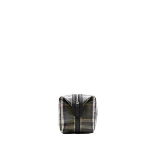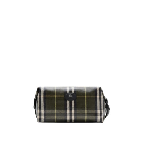 Rooted in the outdoors, the Highlands travel pouch is made in Italy from a cotton linen blend trimmed with smooth calf leather. The fabric is jacquard-woven with the Burberry Check and has a coated finish inspired by rainwear. The compact design is detailed with a slim wrist strap and our Knight stamp – an archival motif first seen on Burberry bags in the 1980s.