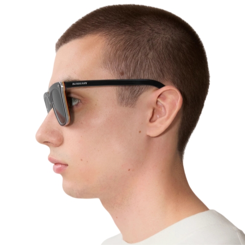– Printed Burberry lettering at temples