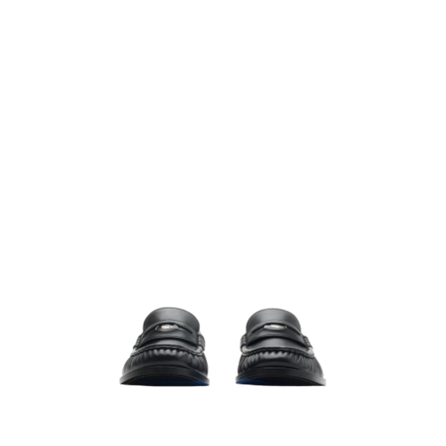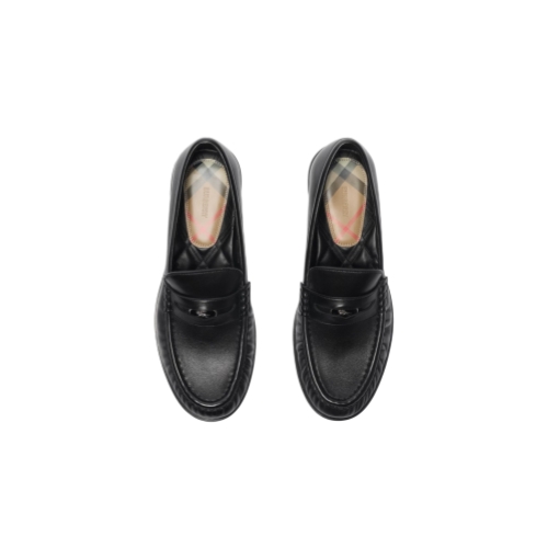 A pair of penny loafers made in Italy from supple leather, hand-stitched for a gathered effect. The front is detailed with an enamelled Knight stamp plaque, an archival motif first seen on Burberry bags in the 1980s. The leather sole features our Equestrian Knight Design in signature Knight Blue.