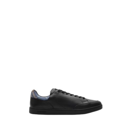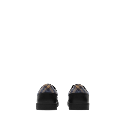 Our new signature sneaker, the Set is a minimalist style designed for everyday luxury. The low-top shape is made in Italy from smooth leather and knitted with a Burberry Check cuff in seasonal wave blue. A suede badge at the tongue is outlined with our Equestrian Knight Design and logo.
