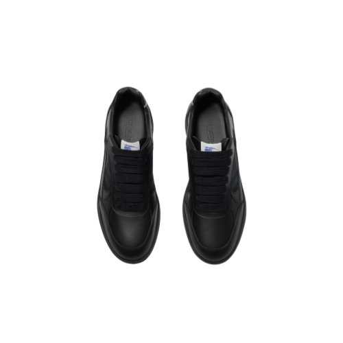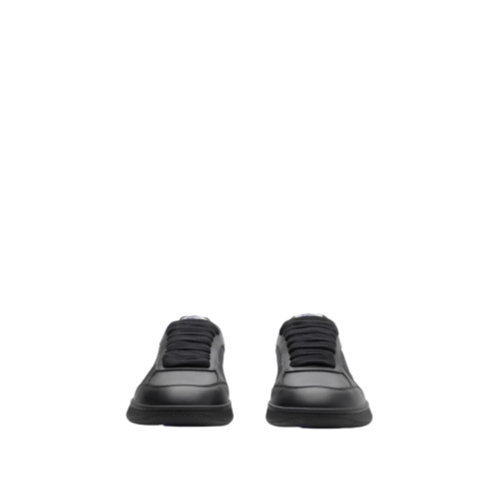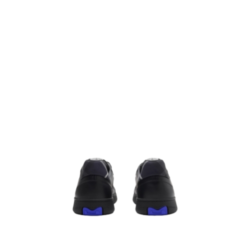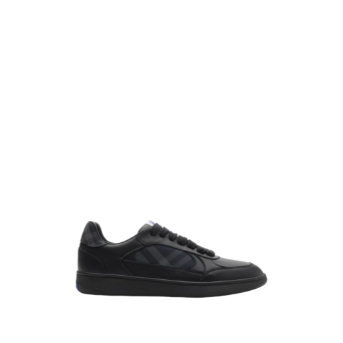 Italian-made sneakers in smooth calf leather, with a contrasting cuff and side panel woven in a seasonal Burberry Check. The style features an Equestrian Knight Design label and the soles are moulded with archive Burberry lettering.