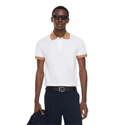 A polo shirt made from lightweight cotton piqué, featuring a tipped collar and cuffs. Cut to a slim fit, the style is knitted with our logo at the collar and is embroidered with a tonal Equestrian Knight Design at the chest.