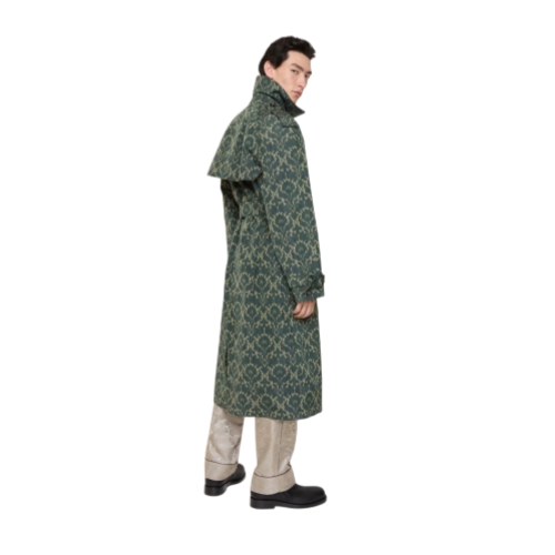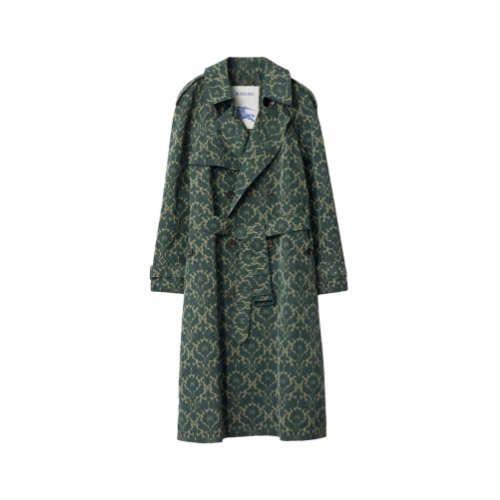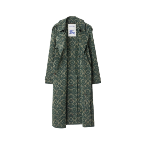 Debuted on the Burberry Winter 2025 runway, a trench coat tailored from a lightweight viscose blend and printed with a Baroque-style pattern inspired by the exquisite, faded interiors of British stately homes. A relaxed fit and raglan construction give a softer line at the shoulders, while an archival trench inspires the curlicue shape of the pockets. Adjust the shape with the B buckle belt.